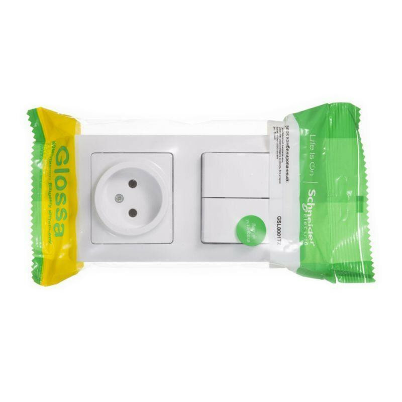 Glossa GSL000172 Блок комбинированный вертикальный (2 кл.+1 роз. 6+16 А в сборе скрытая установка белый) Schneider Electric