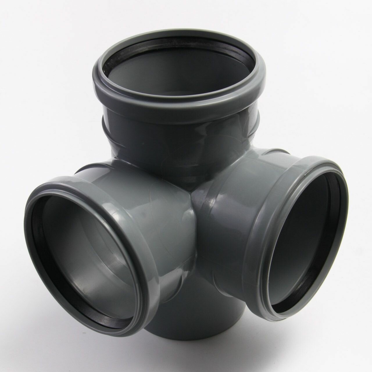 Крестовина двухплоскостная канализационной системы Ostendorf используется для монтажа двух ответвлений от основных канализационных стояков, транспортирующих хозяйственно-фекальные стоки внутри жилых, административных, производственных зданий.