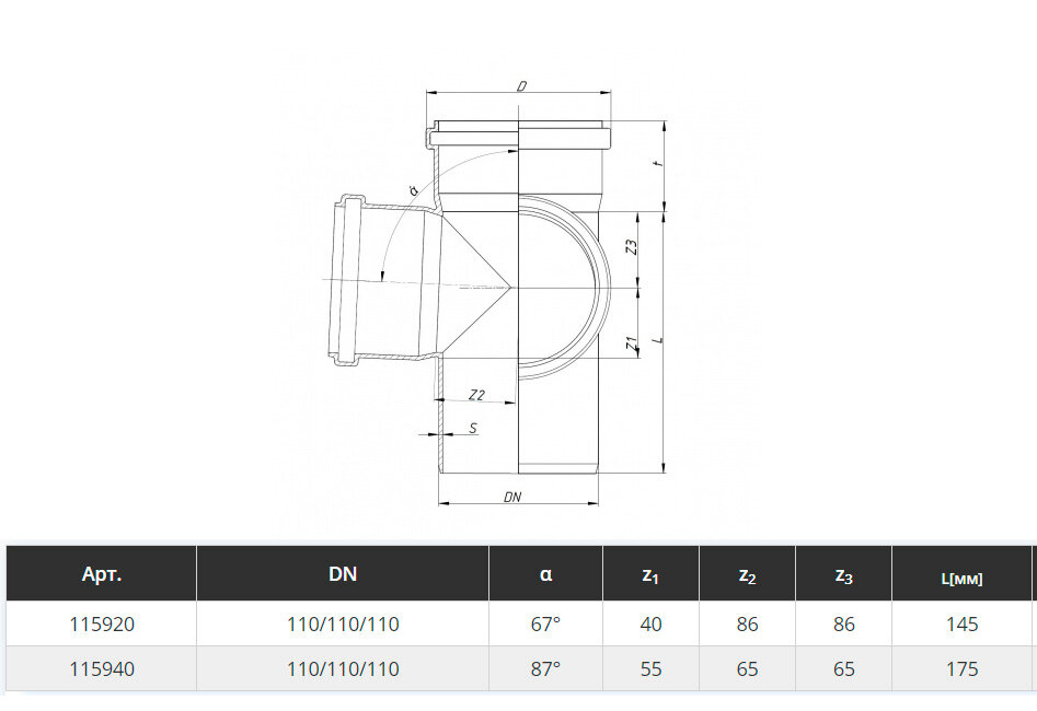 Крестовина двухплоскостная 110/110/110 мм Ostendorf HTDA 115920 (67°, серая)