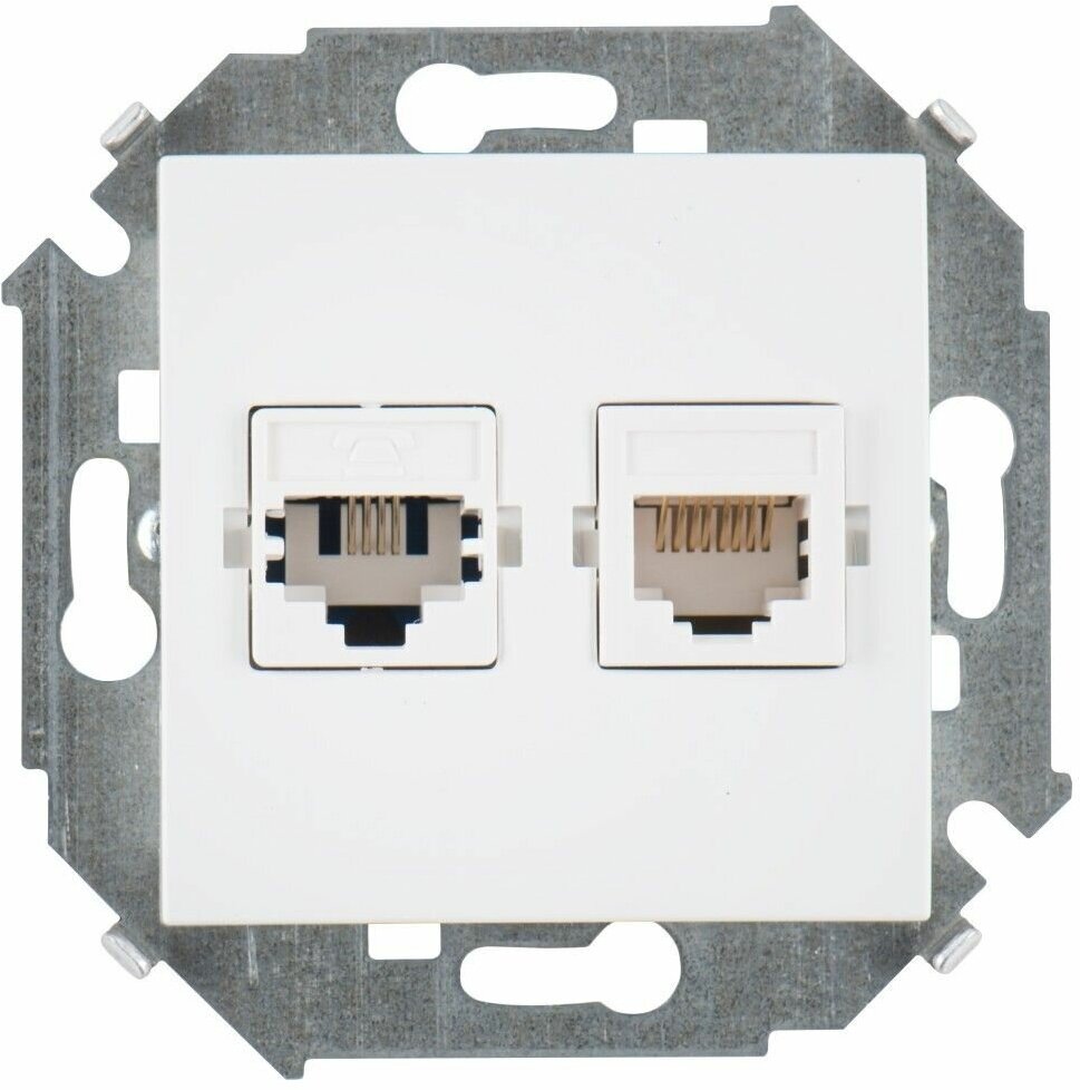 15 1591590-030 Розетка информационная (RJ45+RJ11 под рамку скрытая установка белая) Simon