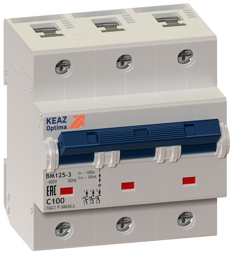 OptiDin 138603 Автоматический выключатель трехполюсный 100А (15 кА D) КЭАЗ