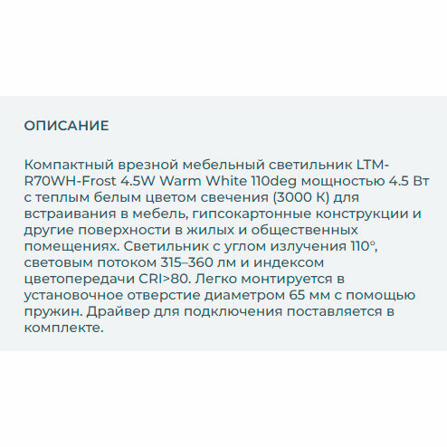020771 LTM-R70WH-Frost 4.5W Warm White 110deg светодиодный светильник Arlight