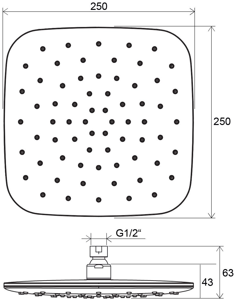 | Форма верхнего душа | Прямоугольная |
