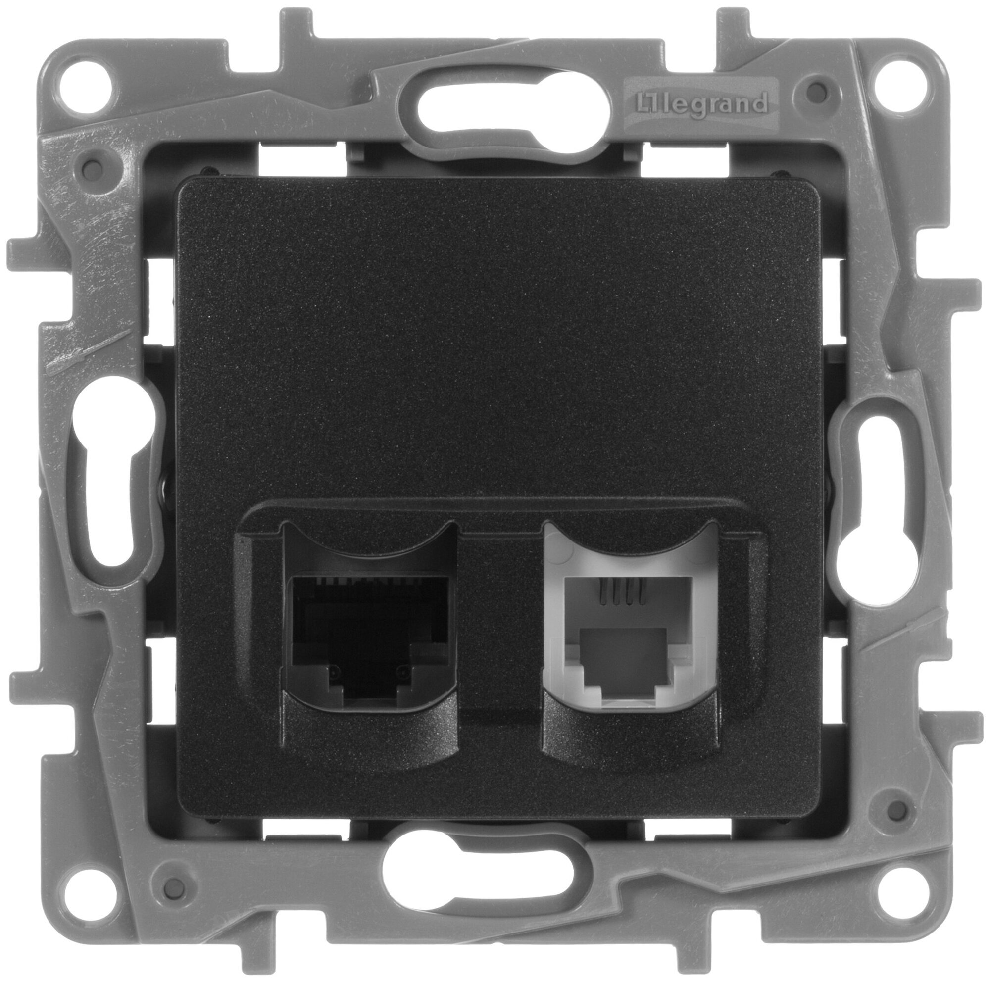 Etika 672652 Розетка комбинированная (RJ11+RJ45 cat.5e UTP под рамку скрытая установка антрацит) Legrand