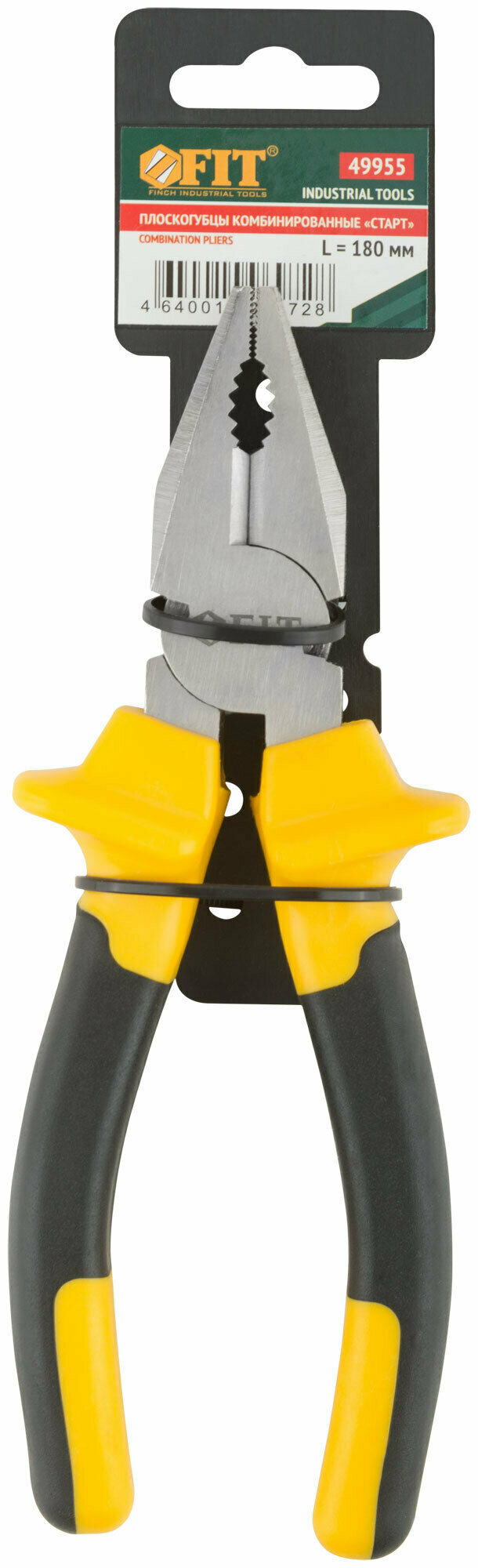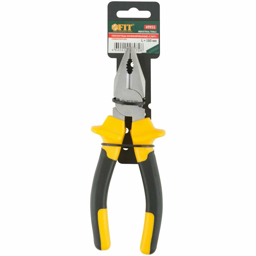 49955 Плоскогубцы комбинированные Старт 180 мм (черно-желтые прорезиненные ручки хром-никелевое покрытие) FIT