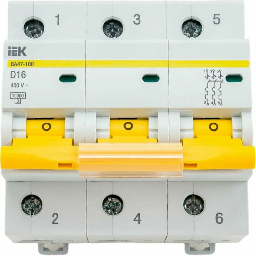 ВА47-100 MVA40-3-016-D Автоматический выключатель трехполюсный 16А (10 кА D) IEK