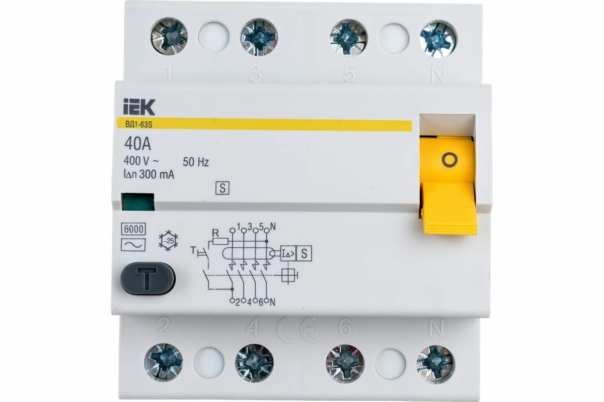 ВД1-63 MDV12-4-040-300 Выключатель дифференциального тока четырехполюсный 40А 300мА (тип AC) IEK