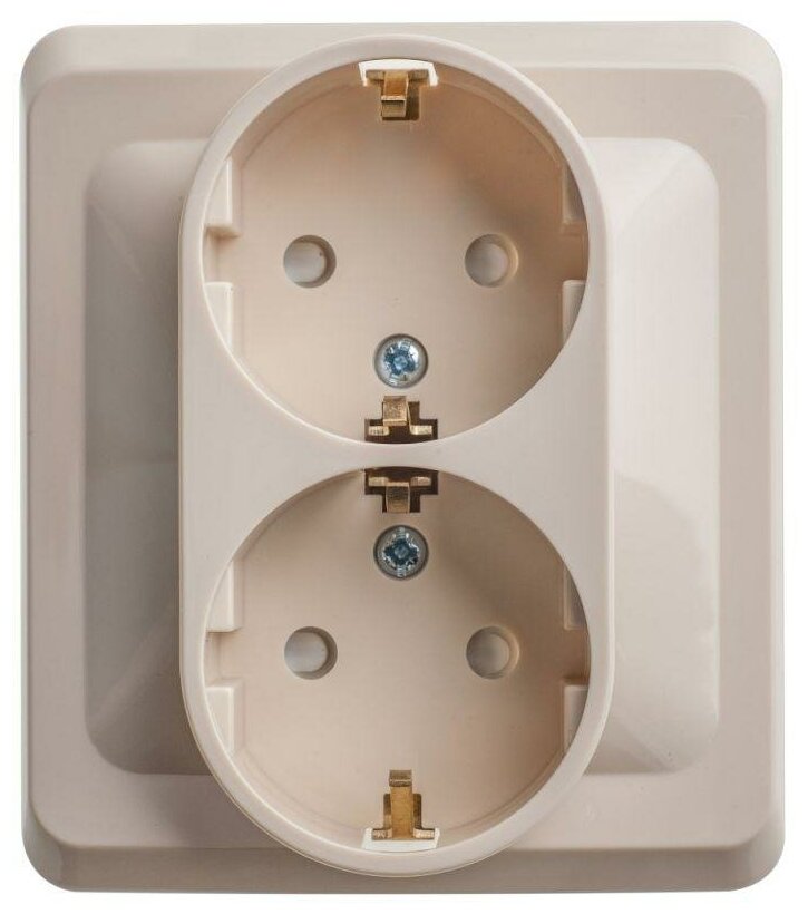 Этюд PC16-008K Розетка двойная с заземляющим контактом и шторками (16 А в сборе скрытая установка кремовая) Schneider Electric PC16-008K Этюд
