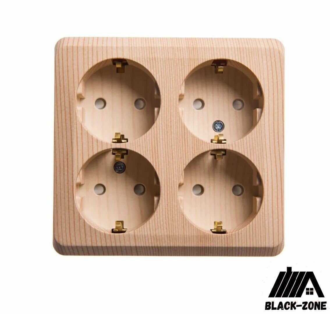 Этюд PA16-208D Розетка четырехместная с заземляющим контактом и шторками (16 А в сборе открытая установка сосна) Schneider Electric PA16-208D Этюд