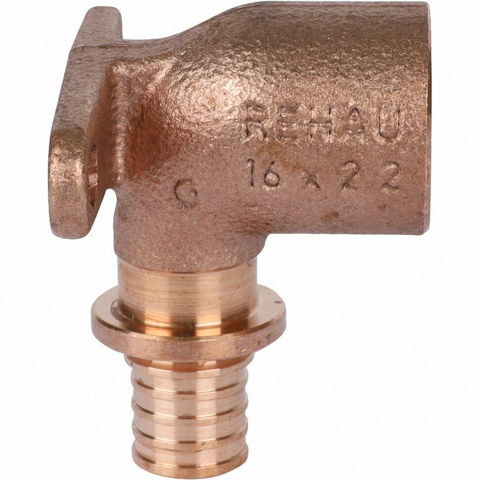 Настенный угольник с внутренней резьбой. Устанавливается на кронштейнах из программы REHAU. Короткий нарезной патрубок.
