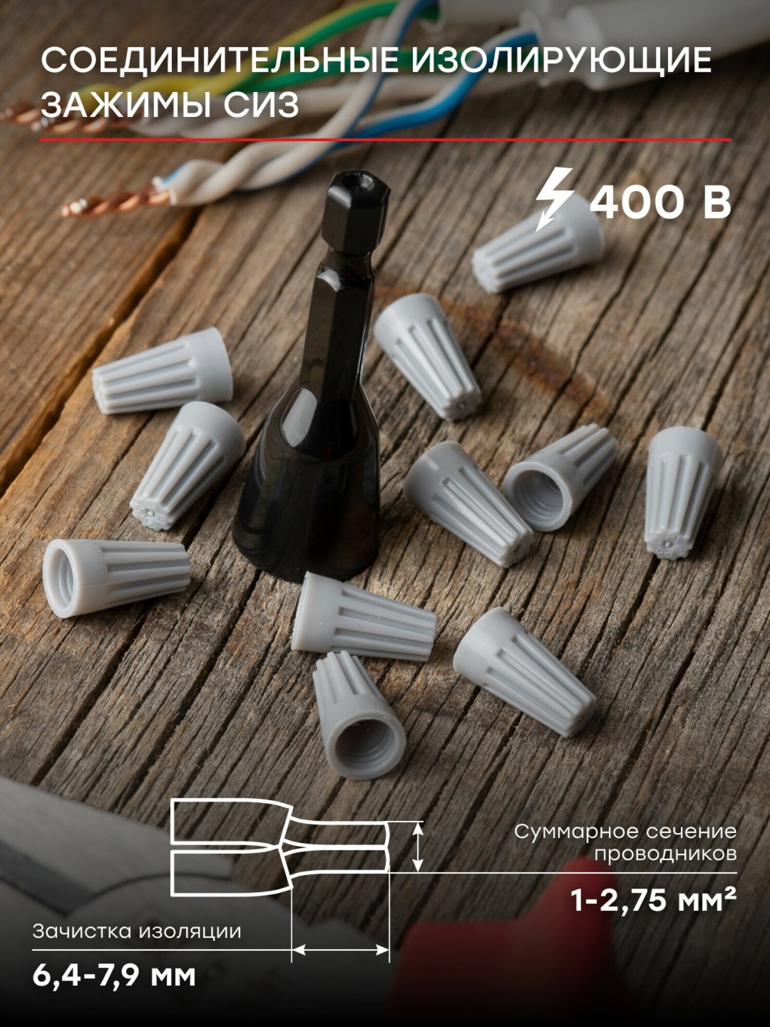 Предназначены для соединения в единый пучок проводов и кабелей, изоляции медных и алюминиевых проводов. Зажим накручивают на оголенные части проводов в несколько оборотов до полной фиксации пучка проводов, при этом внешний корпус выполняет функцию изоляции. Корпус изолирующего зажима выполнен из прессованного огнеупорного ПВХ; внутри пластикового корпуса вмонтирована анодированная пружина конической конфигурации.Кратность продажи: УпакЦена указана за: руб/Упак