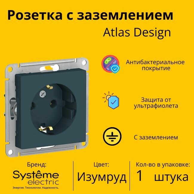 AtlasDesign ATN000843 Розетка с заземляющим контактом (16 А под рамку скрытая установка изумруд) Упаковка (10 шт.) Schneider Electric ATN000843 AtlasDesign