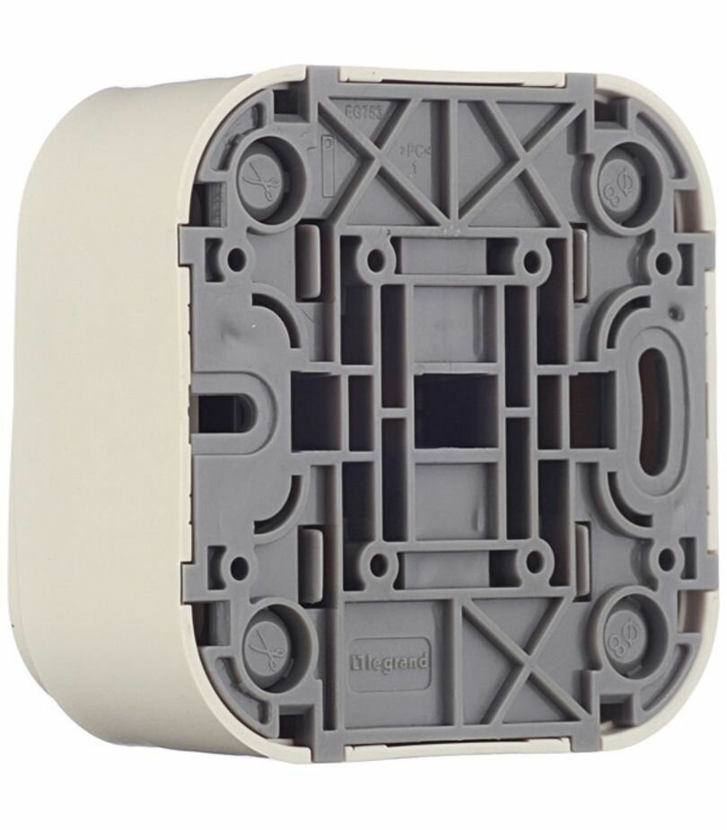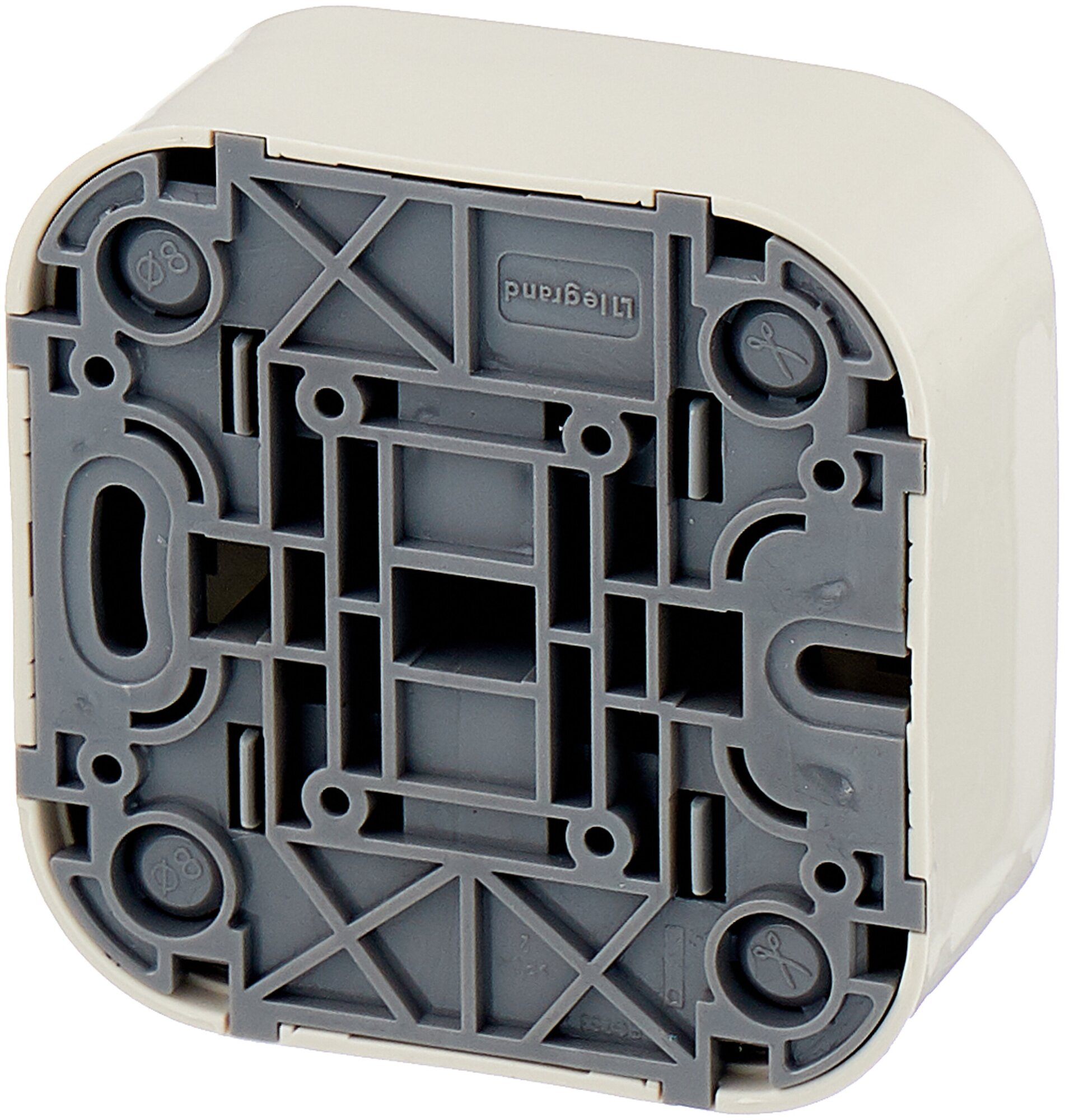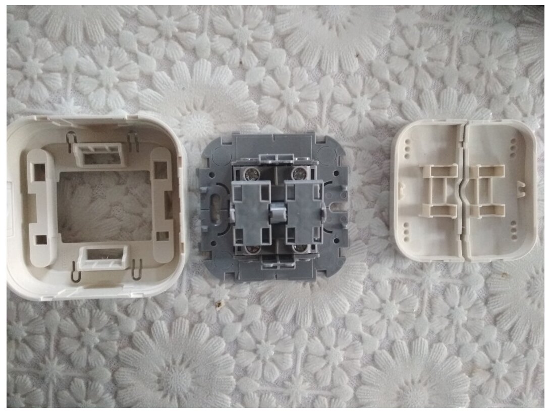 Однополюсный выключатель имеет схему подключения как у обычного одоклавишного выключателя. Регулируемые точки крепления позволяют установить механизм на стене строго горизонтально. Быстрое подключение проводки, благодаря наличию 4-х кабельных вводов с преднарезанными отверстиями диаметром 10 и 16 мм. Отверстия для крепления при помощи гвоздей для фиксации на деревянных поверхностях.
