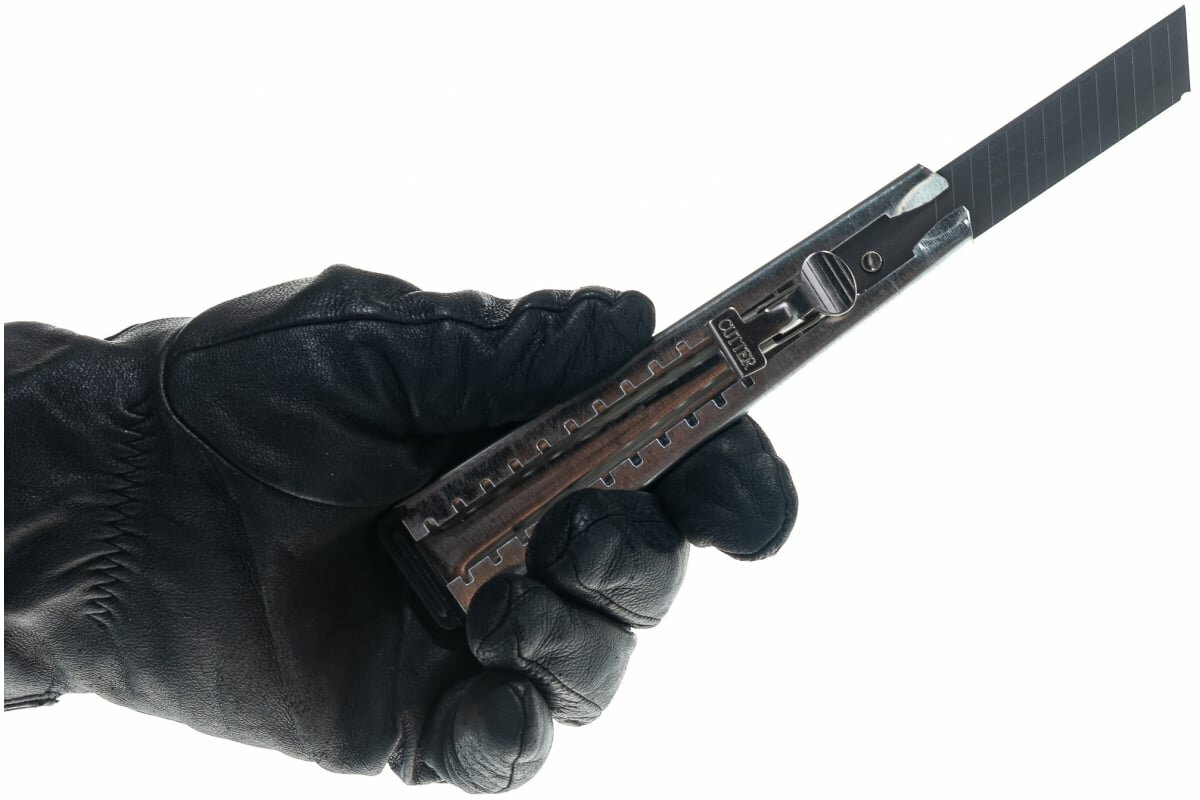 Сегментированное лезвие. Металлический корпус. Металлический фиксатор лезвия. Металиа: инструменталья сталь, пластик.