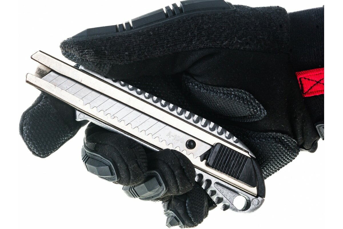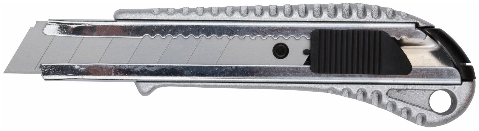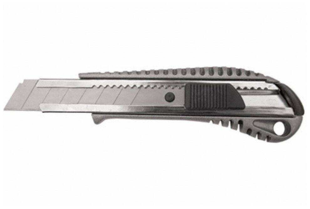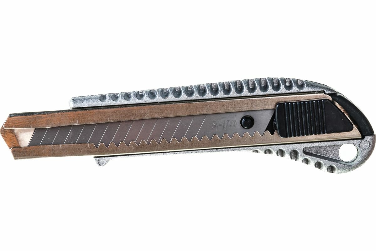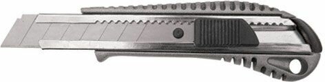 Сегментированное лезвие из инструментальной стали. Металлический корпус с резиновой вставкой.