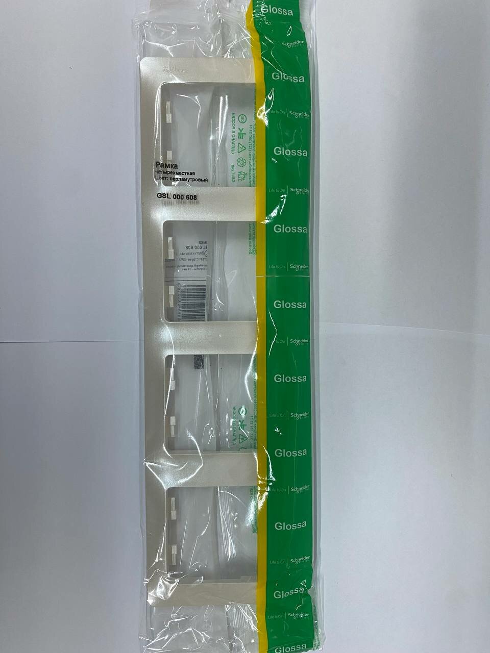 Glossa GSL000608 Рамка 4-постовая вертикальная (перламутр) Упаковка (5 шт.) Schneider Electric GSL000608 Glossa