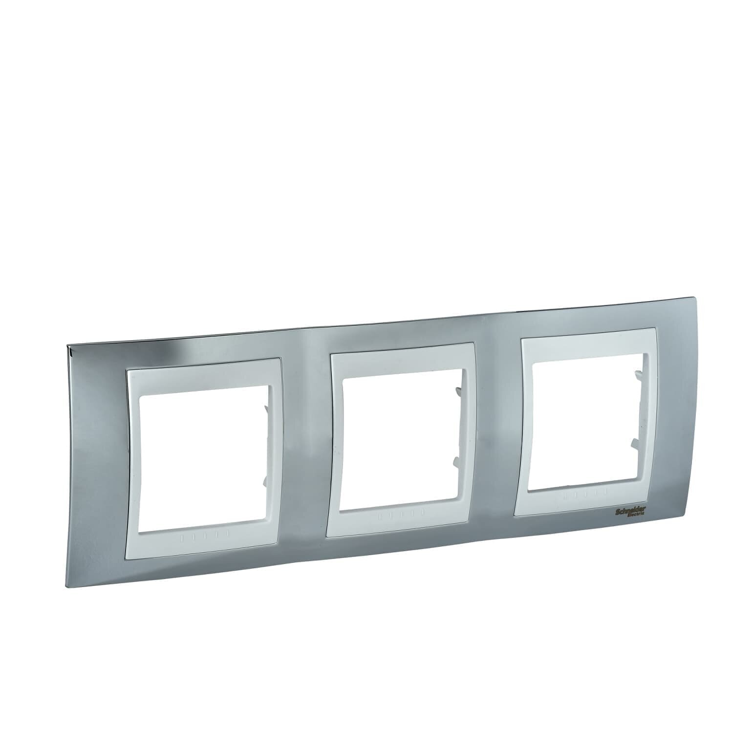 Unica Хамелеон MGU66.006.810 Рамка 3-постовая (горизонтальная белый/серебро) Schneider Electric