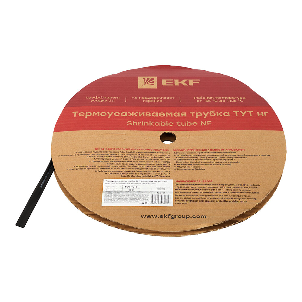 tut-10-b Термоусаживаемая трубка ТУТ 10/5 черная рулон PROxima Упаковка (100 шт.) EKF тут нг 10/5 черная рулон (100 м) proxima
