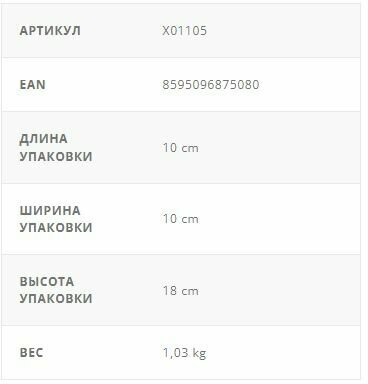 | Размер упаковки ДxШxВ, см | 10x10x18 |