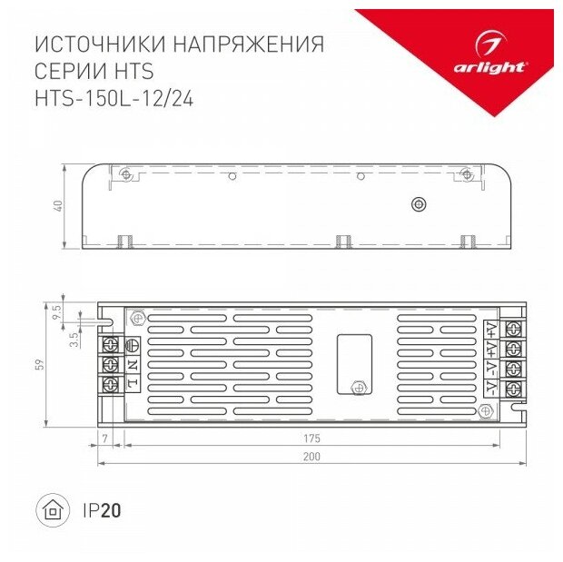 020824 HTS-150L-12 (12V 12.5A 150W) блок питания Arlight HTS 20824