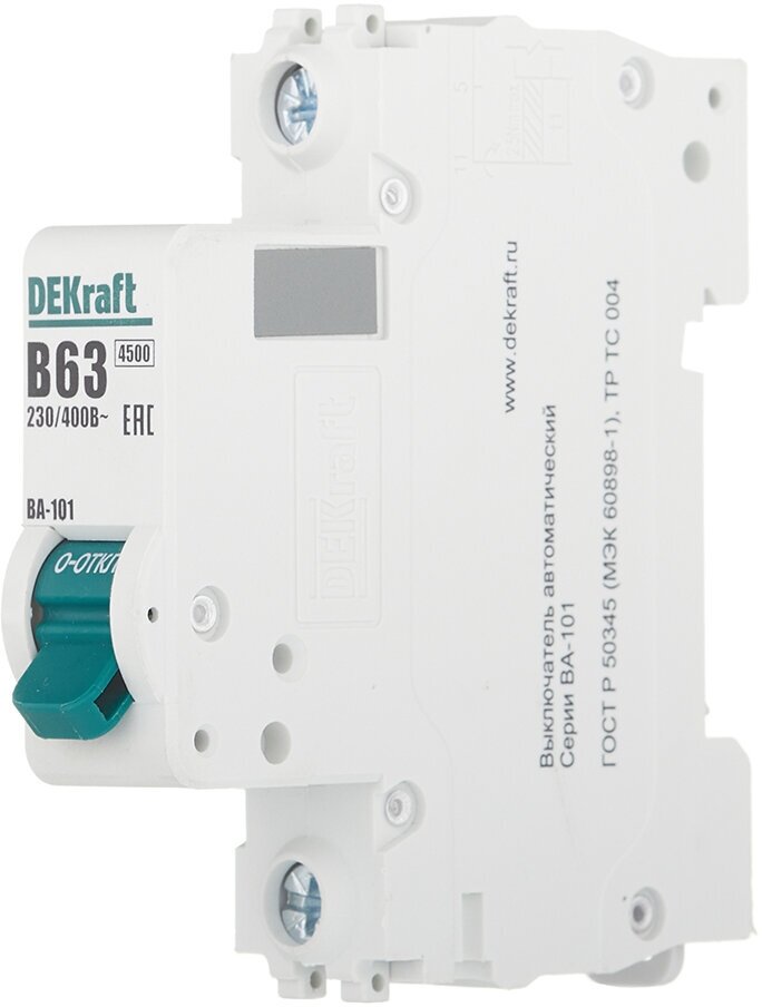 ВА-101 11012DEK Автоматический выключатель однополюсный 63А (4.5 кА B) Упаковка (12 шт.) DEKraft