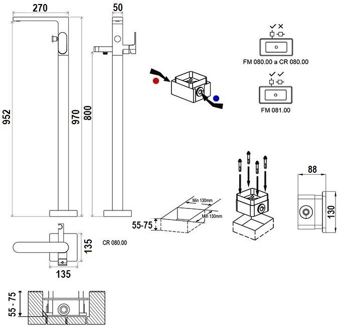 Для подключения смесителя водопровод должен быть вмонтирован в пол и подведён к месту расположения ванны.