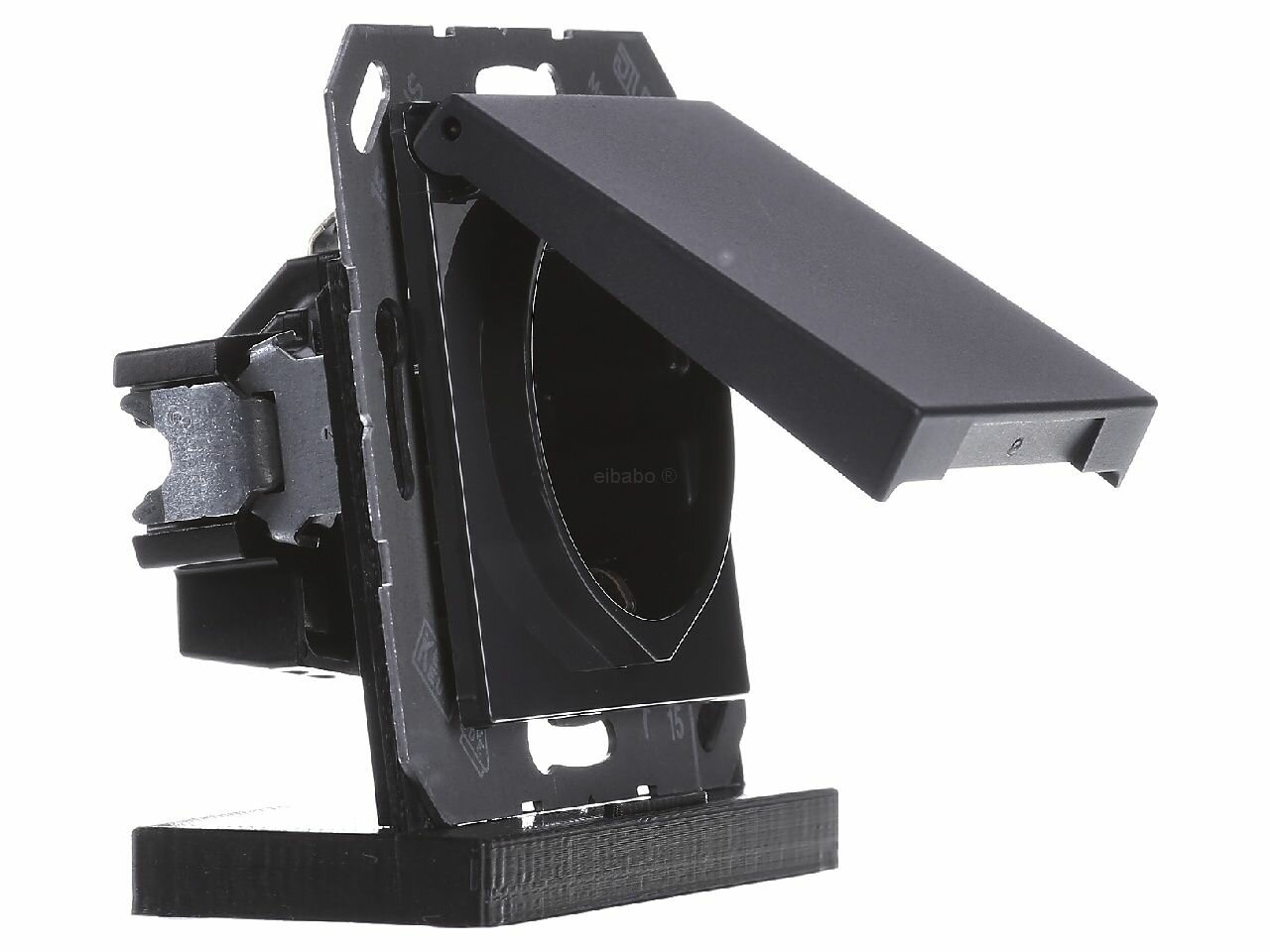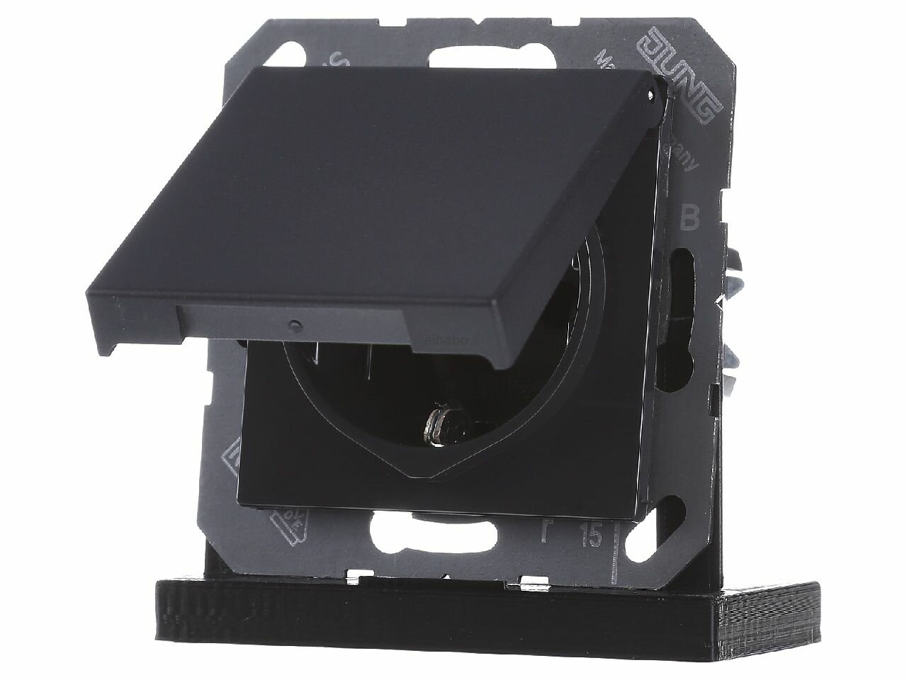 A1520BFKLANM Розетка с заземляющим контактом (16 А под рамку ударопрочная крышка скрытая установка матовый антрацит) JUNG