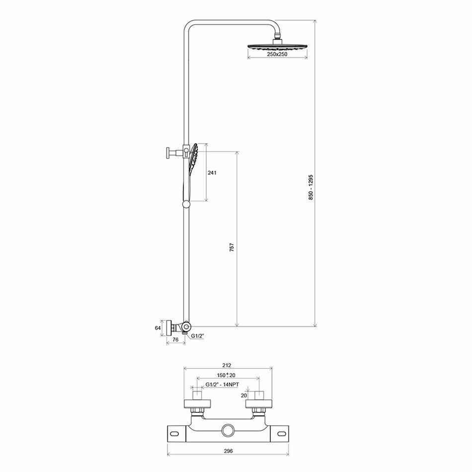 | ВКоробке | Душевая стойка - 1 шт. Лейка - 1 шт. Шланг - 1 шт. Верхний душ - 1 шт. Смеситель - 1 шт. Держатель для душа - 1 шт. Эксцентрик - 2 шт. Инструкция - 1 шт. |