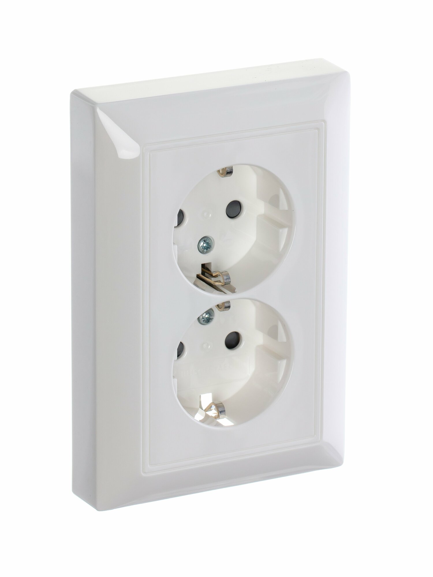 Basic55 2CKA002021A0378 Розетка двойная с заземляющим контактом (16 А шторки в сборе скрытая установка альпийский белый) ABB