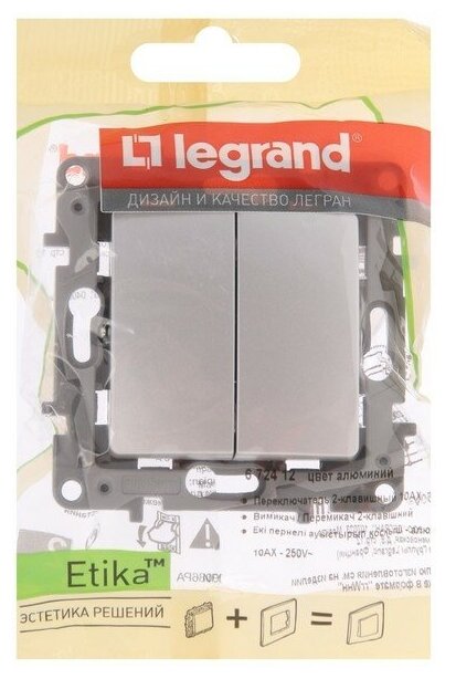 Etika 672412 Переключатель двухклавишный (10 А под рамку скрытая установка алюминий) Legrand