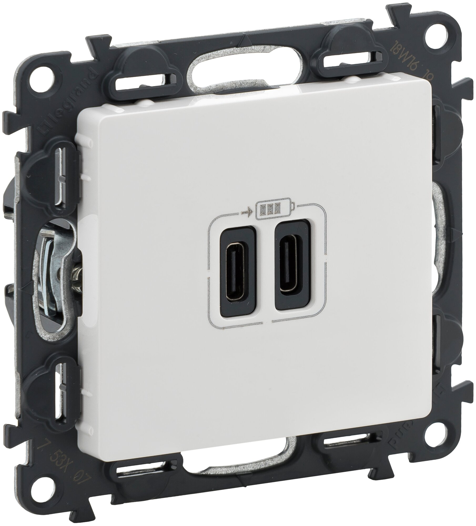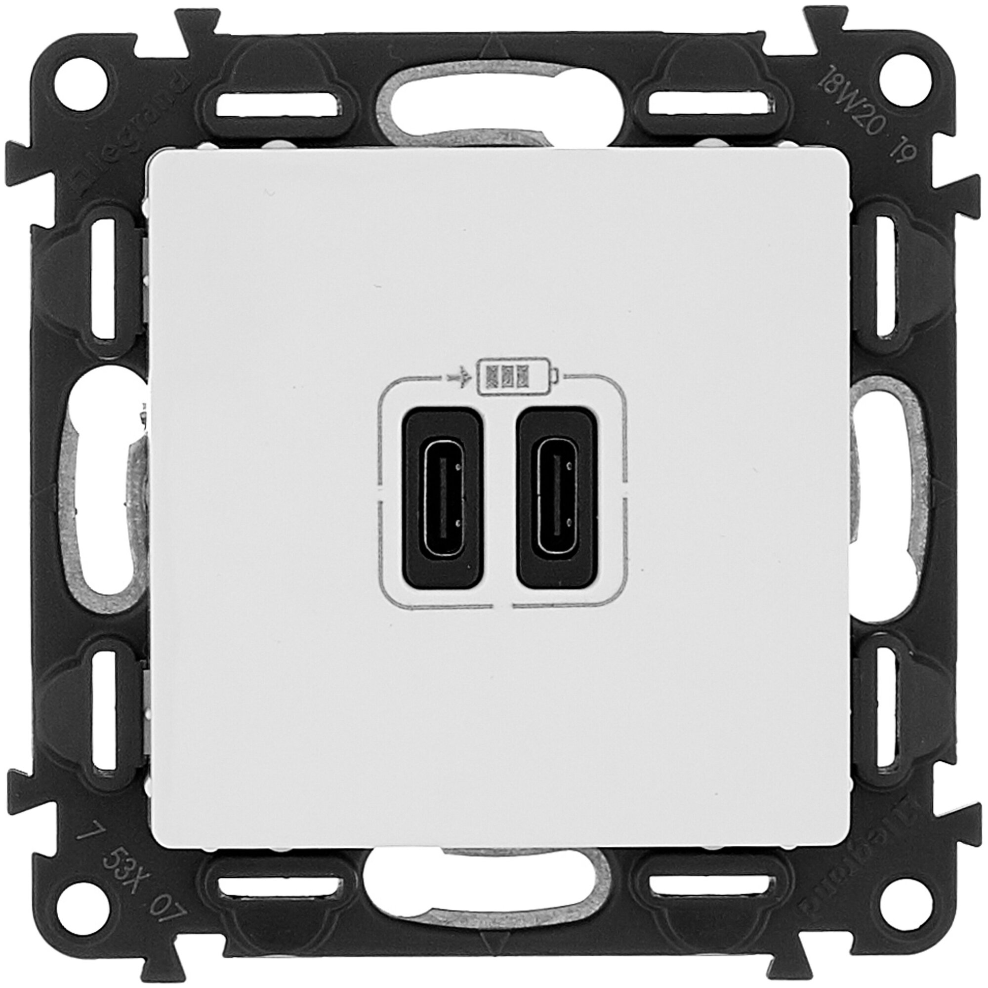 Valena Life 753107 Розетка USB (2xUSB тип С-тип С под рамку скрытая установка белая) Legrand