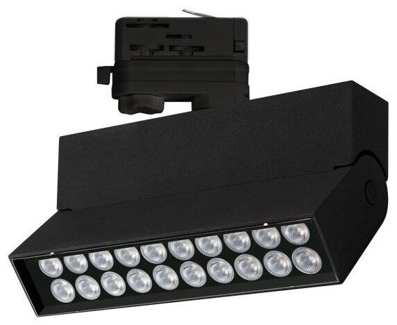Светильник подвесной для треков/шин 4 провода. Корпус прямоугольный, алюминий, цвет черный. Угол наклона 45°. Драйвер встроенный (DC600mA 25-33V).
