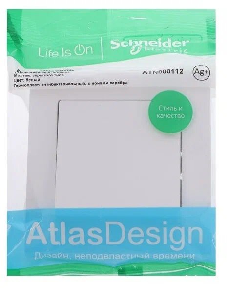 AtlasDesign ATN000112 Выключатель одноклавишный (10 А в сборе скрытая установка белый) Schneider Electric ATN000112 AtlasDesign