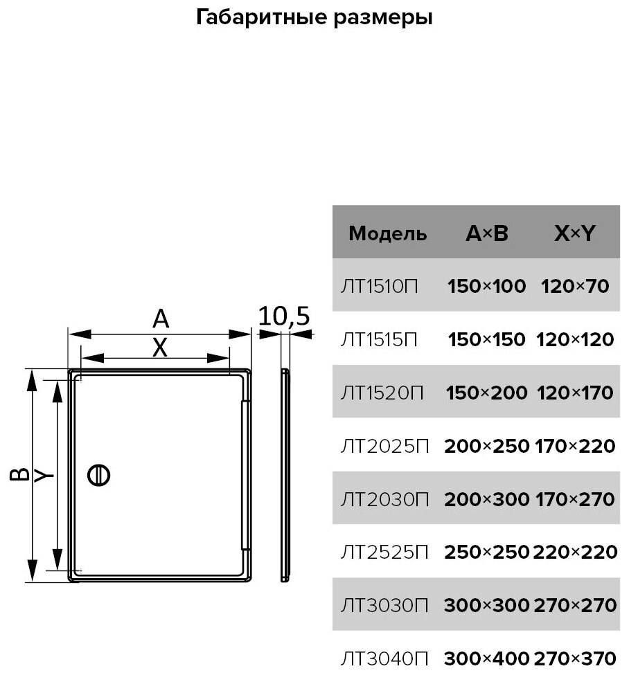 Люк-дверца ревизионный пластиковый с ручкой-задвижкой серии ЛТП.