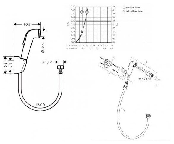 32122000 Гигиенический душ со шлангом 160 см и держателем (белый/хром) Hansgrohe