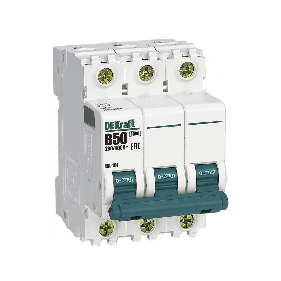 ВА-101 11035DEK Автоматический выключатель трехполюсный 50А (4.5 кА B) DEKraft