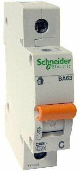 Домовой 11204 Автоматический выключатель однополюсный 20А (4.5 кА C) Schneider Electric ВА63 Домовой 1п C 20А 4.5кА