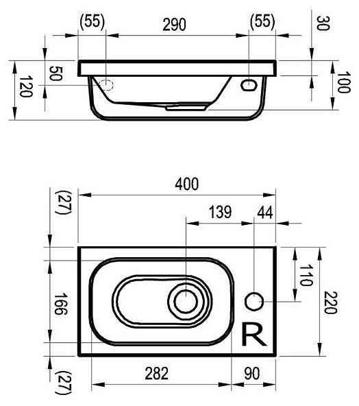Chrome XJGP1100000 Умывальник 40х22 см (смеситель справа) Ravak Chrome 400