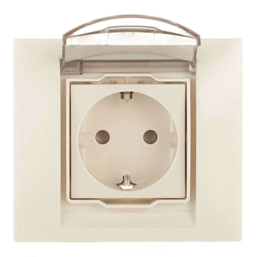 Unica New NU003744 Розетка с заземляющим контактом (IP44 16 А в сборе шторки крышка скрытая установка бежевая) Schneider Electric