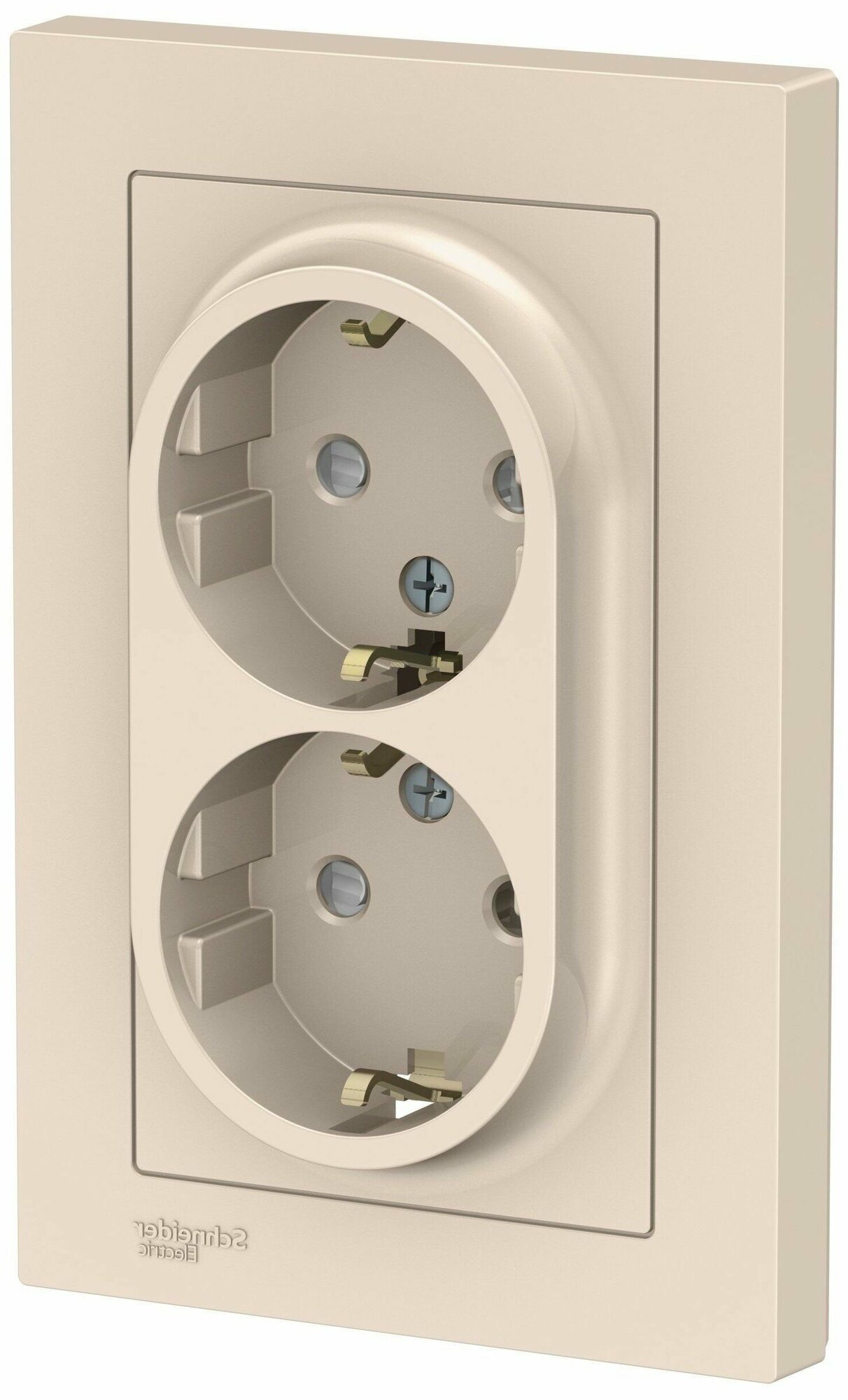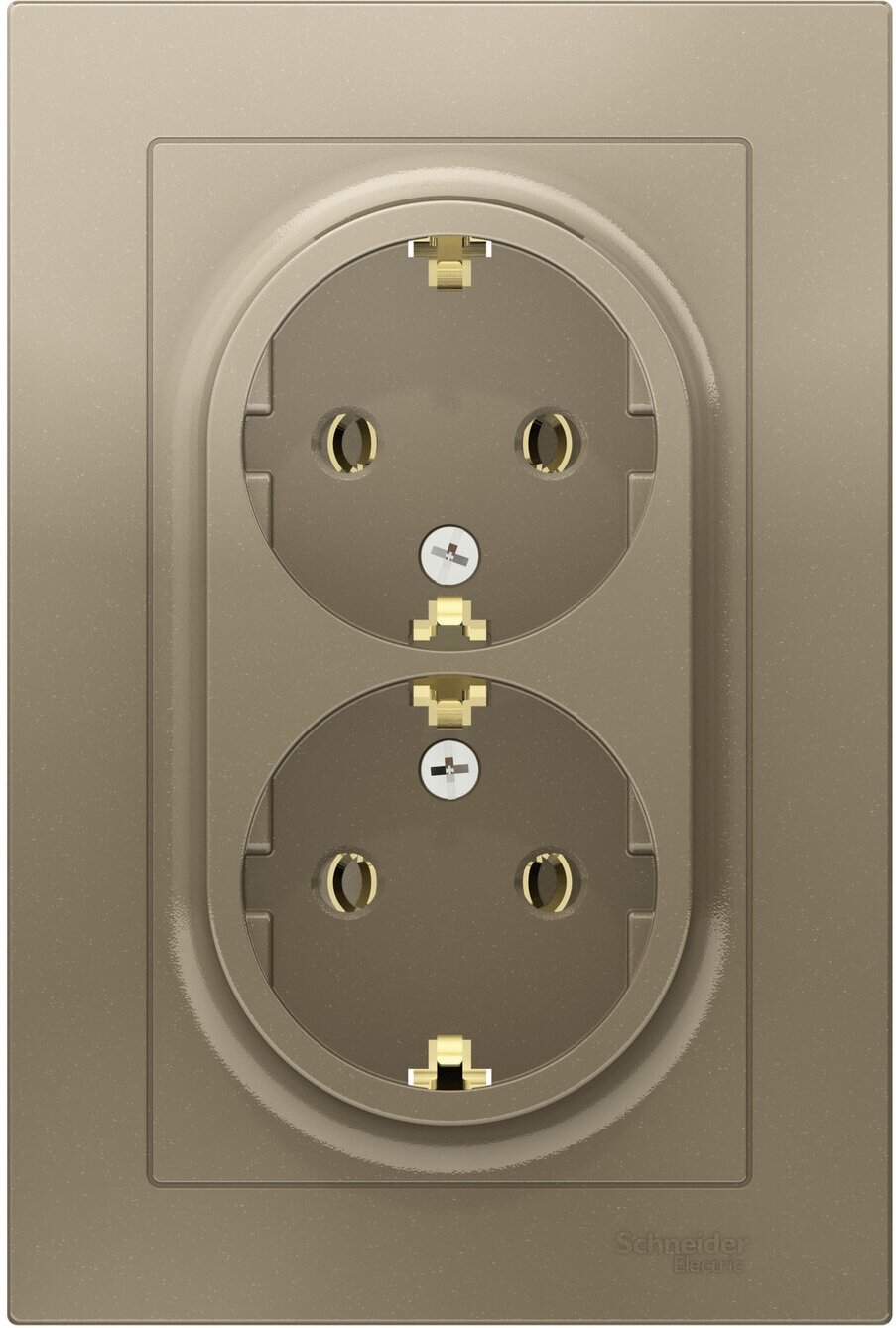 AtlasDesign ATN000324 Розетка двойная с заземляющим контактом (16 А в сборе скрытая установка алюминий) Schneider Electric ATN000324 AtlasDesign
