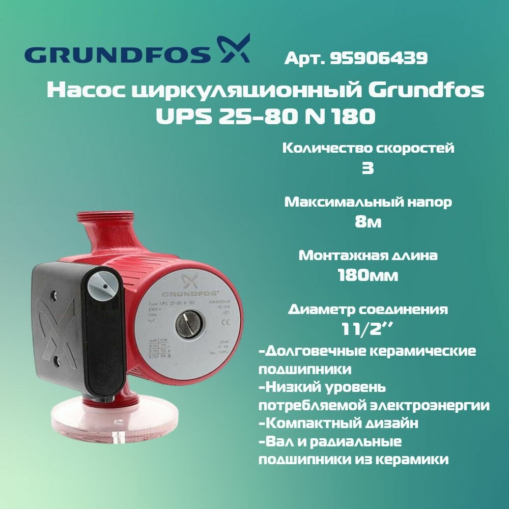 UPS 25-80 N 95906439 Насос циркулярный (напор 8 м 1 1/2" 180 мм) Grundfos