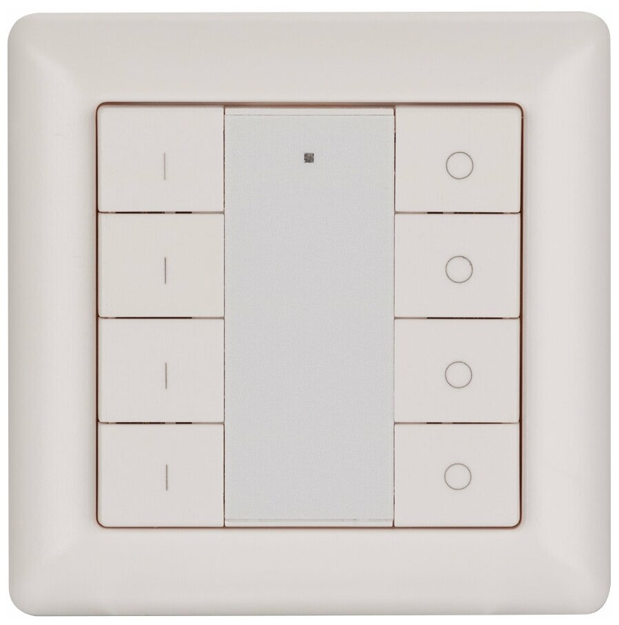 8 кнопок (4-е группы), 3 функции каждой группы (ВКЛ / ВЫКЛ / ДИММИРОВАНИЕ).