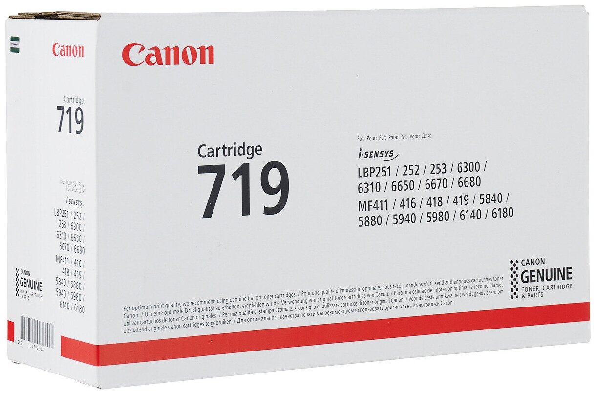 Картридж Canon 719 (3479B002) BlackРасходные материалы Canon пользуются большой популярностью благодаря зарекомендовавшему себя качеству, они давно существуют на рынке, а развитие новых технологий позволяет производить все более надежные расходные материалы. С картриджами Canon заметно повысится эффективность и производительность работы, ведь их объема хватает надолго, а результаты ни у кого не вызывают нареканий.