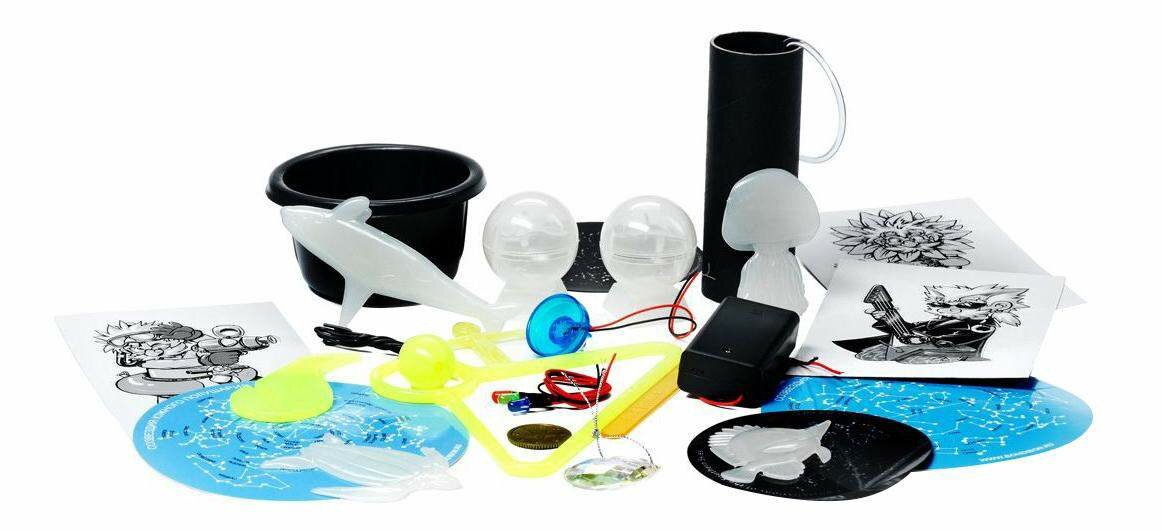 Открой для себя поразительные явления ночи при помощи опытов предложенных в этом наборе. Проделав всего 12 опытов ребёнок поймёт почему светится фосфор, как устроены тени и свет, и что такое электростатика.