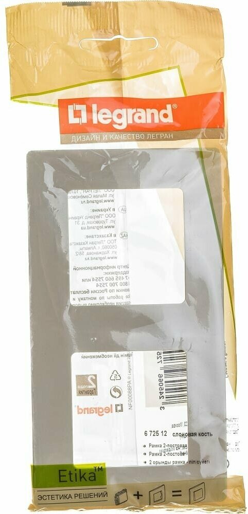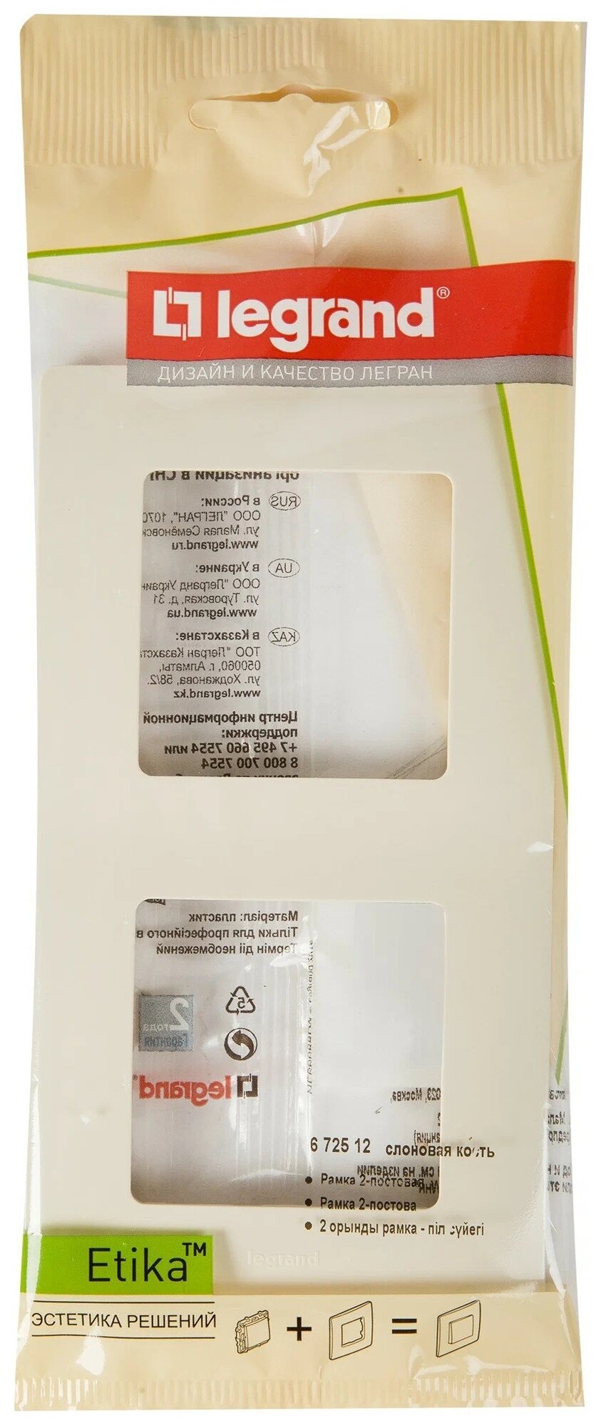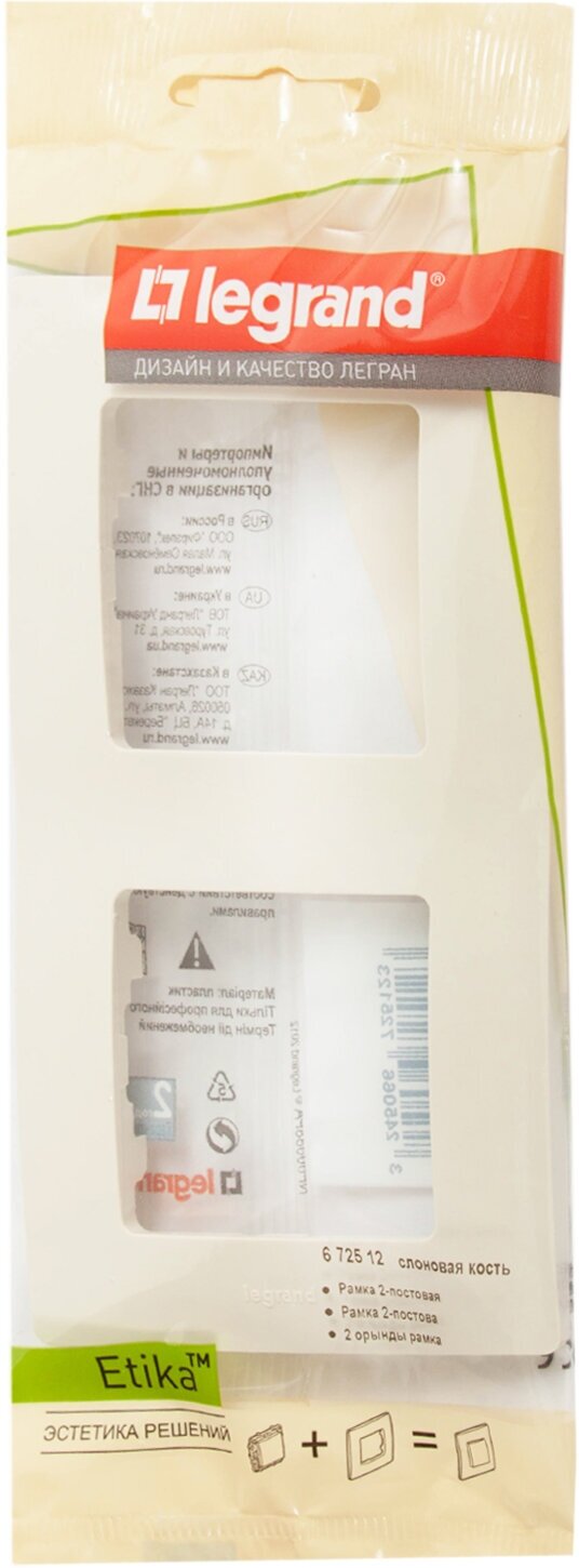 Etika 672512 Рамка 2-постовая (слоновая кость) Legrand