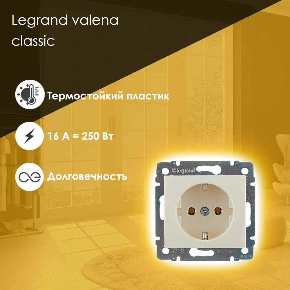 Valena 774320 Розетка с заземляющим контактом (16 А под рамку скрытая установка слоновая кость) Legrand