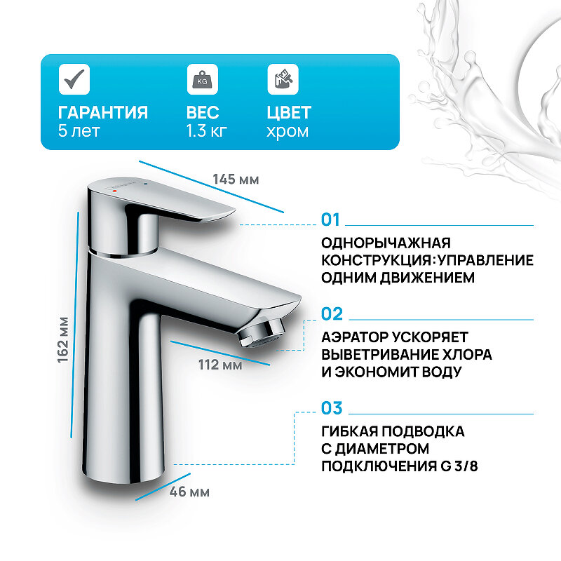 Talis E 71712000 Смеситель для раковины (3/8" однозахватный без д/к 5 л/мин) Hansgrohe Talis E 110