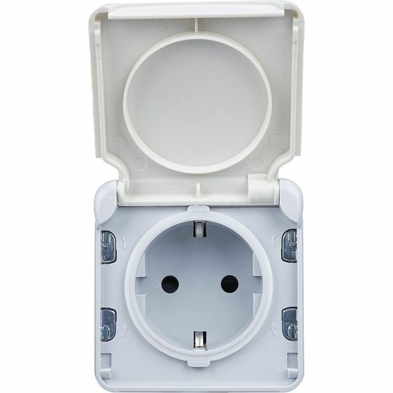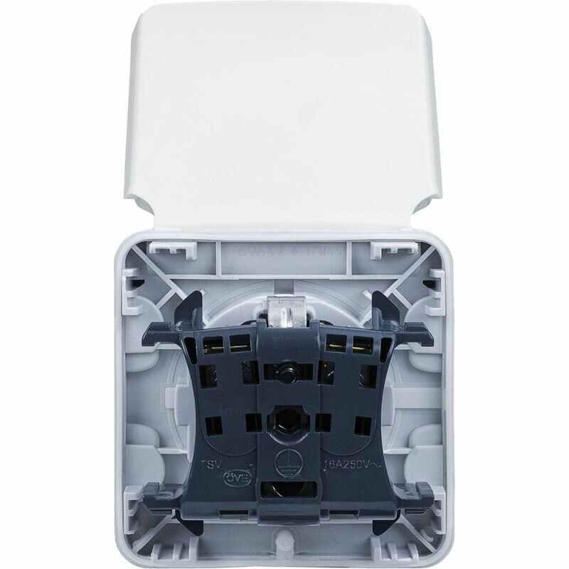 Plexo 069639 Розетка с заземляющим контактом (16 А IP55 под рамку винт. зажимы скрытая установка крышка белая) Legrand