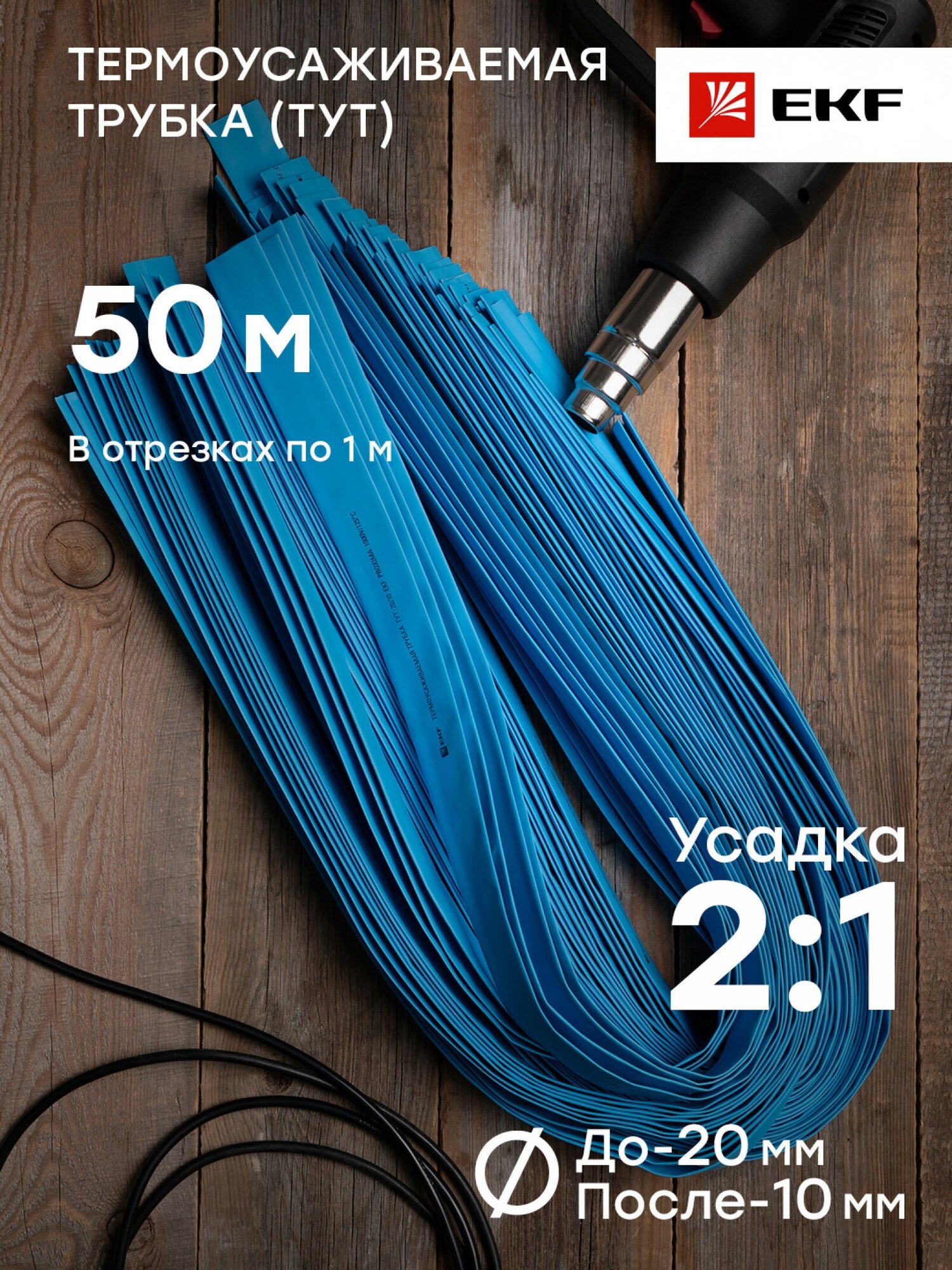 tut-20-g-1m Термоусаживаемая трубка ТУТ 20/10 синяя в отрезках по 1м PROxima Упаковка (50 шт.) EKF