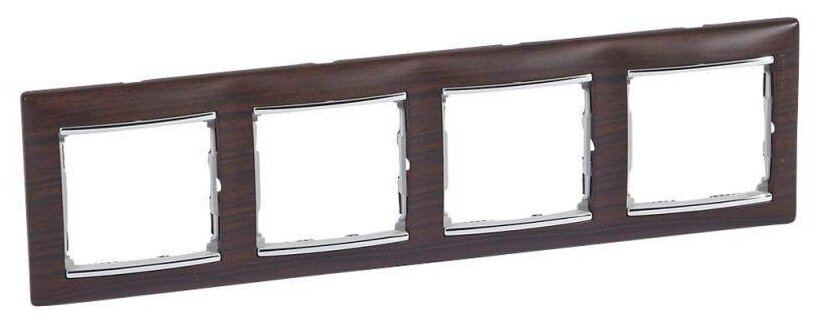 Valena 770374 Рамка 4-постовая (универсальная темное дерево/серый штрих) Legrand